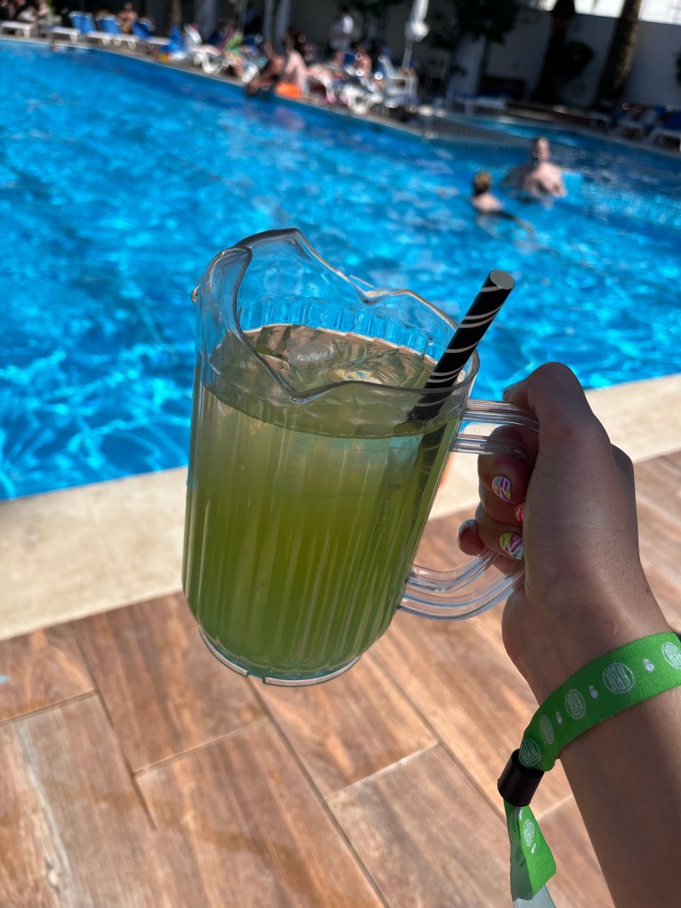 Managed to get early flights so we were in Ibiza by lunchtime and the sun was gorgeous. It wasn’t as hot as I like it to be but it was definitely warm. We were staying at the Hotel Vibra Marco Polo II and it was lovely, nice and stylish and right where we needed to be for everything. I got changed into holiday attire and went for a mooch. Georgy, Bekah and I found a gorgeous cove which made everything fall silent and just to have the waves lapping at your feet and the sun on your face was wonderful.